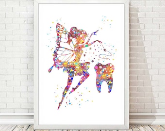 Tooth Fairy Watercolor Print Dental Art Dentist Clinic Wall Etsy